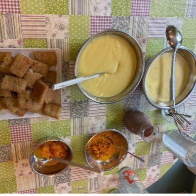 Alle 2 Monate haben wir im Kindergarten Kochtag,an welchem wir selbst das Essen zubereiten. Im November sind unsere Jüngsten,also die 3-Jährigen,an der Reihe gewesen.Sie haben für den ganzen Kindergarten Kartoffeln geschält und gekocht,um Kartoffelbrei daraus zu machen.Außerdem gab es Fischstäbchen aus dem Ofen und eine exotische Variante eines Karrottensalats,der seinen Nutzen letztendlich als Soße gefunden hat.Zum Nachtisch gab es dann noch leckeren Vanillepudding mit Schokosoße.Auf jeden Fall war es ein wahrer Gaumenschmaus.Wir bedanken uns bei unseren Jüngsten (und den Erzieherinnen) für das Festmahl.Auf dass die 4-Jährigen im Januar ein ähnlich kulinarisches Meisterwerk aufs Tablett zaubern.