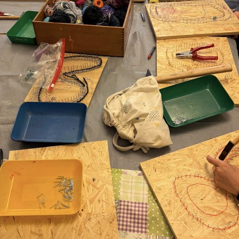 Hämmern, tüfteln und ausprobieren – beim Bastelnachmittag entstanden kreative Murmelbahnen. Zahlreiche Familien machten mit: Zunächst wurden die Bahnen auf Holzbrettern aufgezeichnet, anschließend mit großem Einsatz gehämmert – insgesamt kamen dabei über 1.500 Nägel zum Einsatz. Mit viel Kreativität entstanden ganz individuelle Werke.